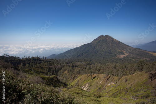 Fototapeta premium View from the tropical forest with path to the volcano Kawah Ije