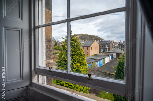 Obraz premium View from the window of a house to Arthur´s seat in Edinburgh