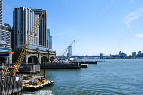 Naklejka premium View from Whitehall Terminal, a ferry terminal used by the Staten Island Ferry, which connects the island boroughs of Manhattan and Staten Island.