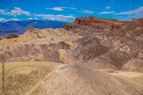 Fototapeta premium View from Zabriskie Point with its interesting looking erosional landscape. In the Death Valley National Park, USA.