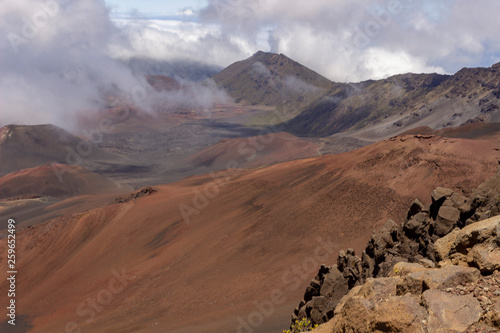Fototapeta premium View into Haleakala crater with clouds rolling in