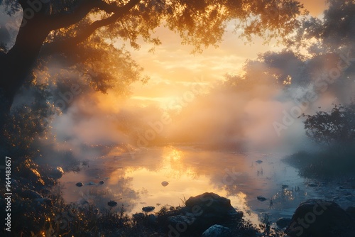 © Mrsabata, Fototapeta premium view Misty Sunrise over River