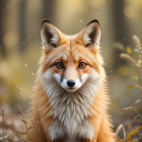 © Hanan, Fototapeta premium View of a beautiful furry fox in the forest