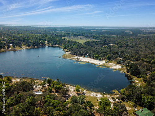 © Robert, Fototapeta premium View of a blue lake taken by a drone