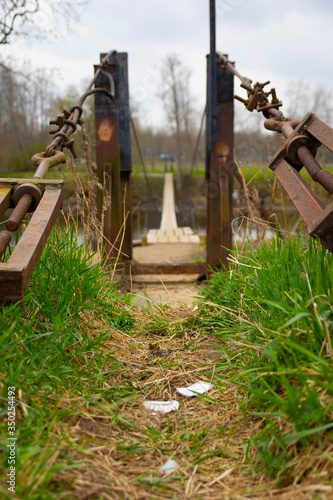 © cergfix, Fototapeta premium View of a bridge and some trash in the grass