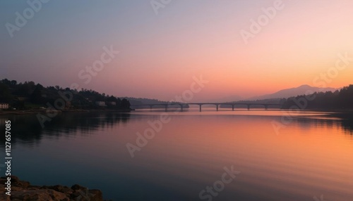 © iLegal Tech, Fototapeta premium view of a bridge over a river at sunset