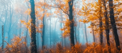 © BISMILAH, Fototapeta premium View of a cool forest full of mist in autumn