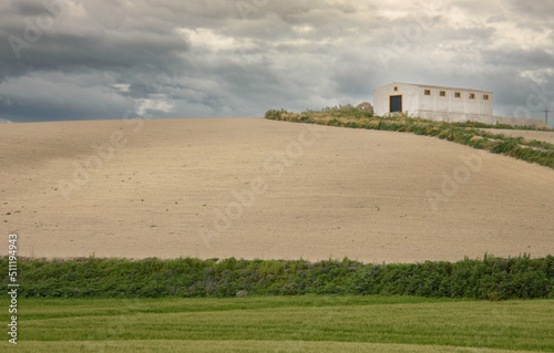 Fototapeta premium View of a farmhouse in the Andalusian countryside near the city of Jerez in...
