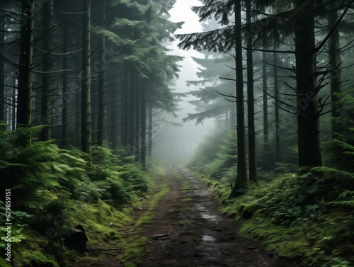 Fototapeta premium View of a Foggy Forest in the Mountains on a Cloudy Day
