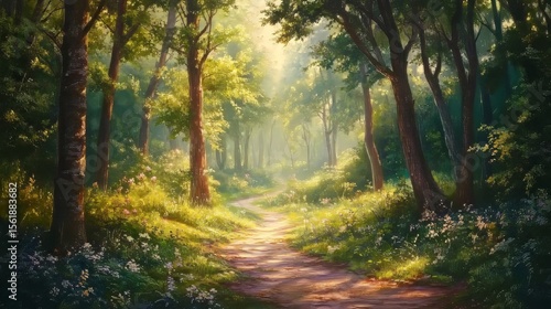© Bilal, Obraz premium View of a forest path in a peaceful woodland