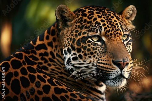 Obraz premium View of a Jaguar up close (Panthera onca). Generative AI