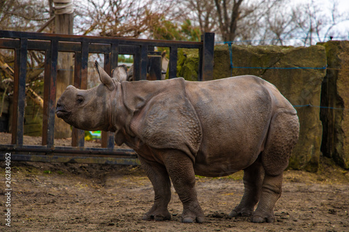 © Dzmitry, Naklejka premium View of a large rhino in the park for a walk.
