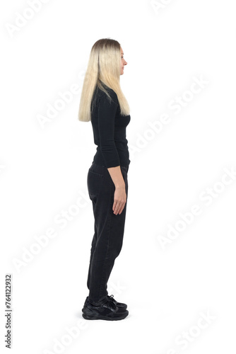 Obraz premium view of a portrait of a blonde woman standing on white background