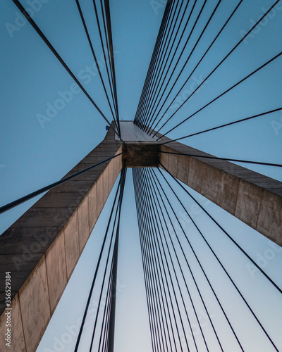 © Southern Creative, Fototapeta premium View of a pylon with attached cables holding up a cable suspended bridge.