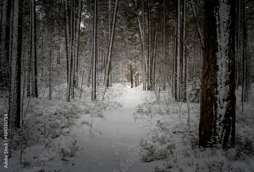 © Gints , Naklejka premium View of a snowy forest. Pine forest in winter.