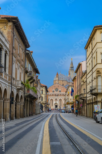 Fototapeta premium view of a street in Padua with the basilica in the background