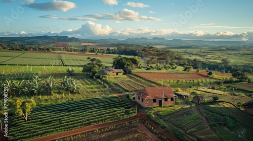 Naklejka premium view of a sustainable farm, showcasing a harmonious coexistence between agriculture and nature, highlighting the importance of environmental stewardship