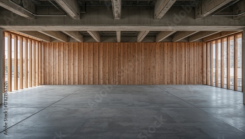 Fototapeta premium View of a wooden panel and concrete structure surrounding a vacant slab...