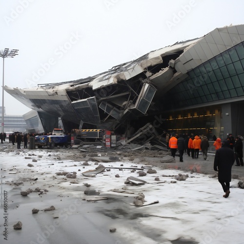 © Yulia, Naklejka premium view of airport ruins after massive artillery shelling
