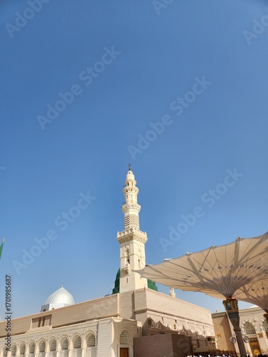 Fototapeta premium View of Al-Masjid an-Nabawi in Madinah Al Munawwarah, Saudi Arabia. The image...