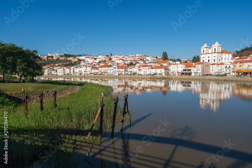 © Luis, Fototapeta premium View of Alcacer do Sal cityscape from the other side of the Sado river