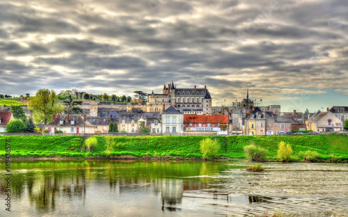 Naklejka premium View of Amboise town with the castle and the Loire river. France.