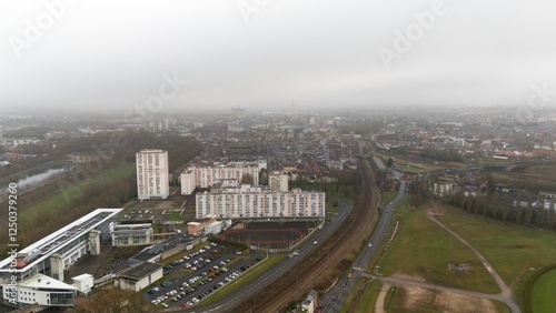 © Viola, Fototapeta premium View of Amiens, France with Residential Buildings, Railway, and Green Spaces