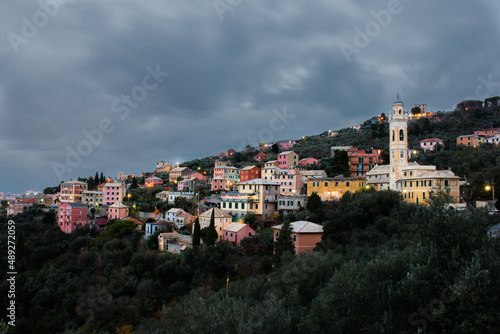 © Alican, Obraz premium view of an italian town at the dusk with cloudy sky.