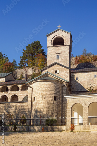 © Olga Iljinich, Fototapeta premium View of ancient Cetinje Monastery on sunny autumn day. Montenegro, Cetinje town