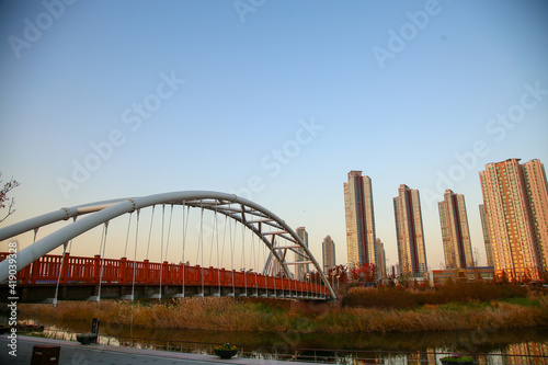 Obraz premium 한국 인천에서 보는 아파트가 보이는 View of apartments from Incheon, Korea