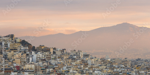 Obraz premium View of Athens from Lycabettus hill at dawn, Greece.