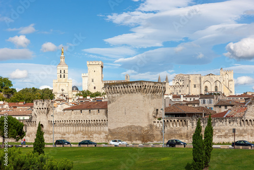 Fototapeta premium View of Avignon cathedral (Cathedral of Our Lady of Doms) and Palace of the...