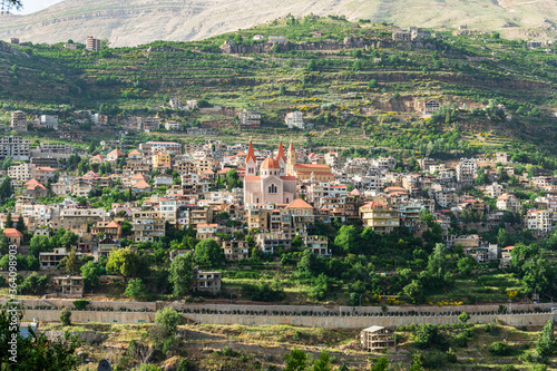 Fototapeta premium View of Bcharre (Bsharri) in Lebanon. The town has the only preserved...