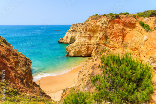 Fototapeta premium View of beautiful beach with rocks near Portimao town, Algarve, Portugal