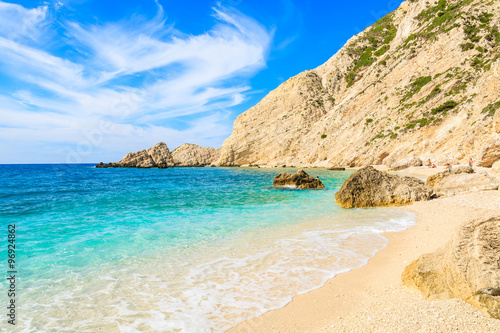 © pkazmierczak, Fototapeta premium View of beautiful beach with rocky cliffs at Mediterranean Sea