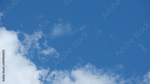 Fototapeta premium View of beautiful blue sky background with white clouds at the noon, Bangkok, Thailand.
