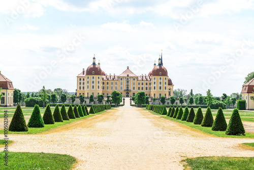 Fototapeta premium View of beautiful garden and Moritzburg Castle in Germany