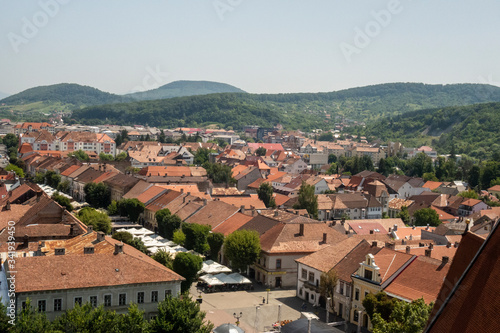 © Oana, Obraz premium View of Bistrita town from Evangelical Church tower, Transylvania, Romania