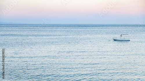 Fototapeta premium view of boat in Ionian sea in summer twilight