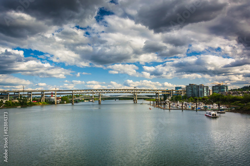 Naklejka premium View of bridges over the Williamette River in Portland, Oregon.