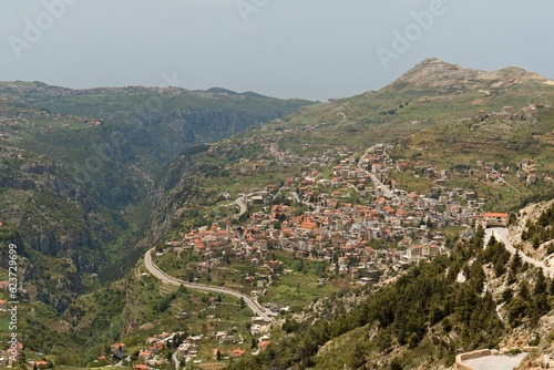 Fototapeta premium View of Bsharri town in Kadisha Valley. Lebanon.