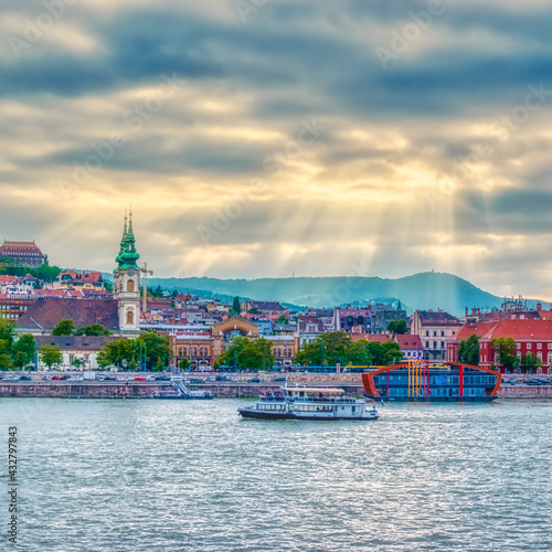 © Nikolett, Fototapeta premium View of Buda Hill at sunset with a cloudy sky, Budapest, Hungary