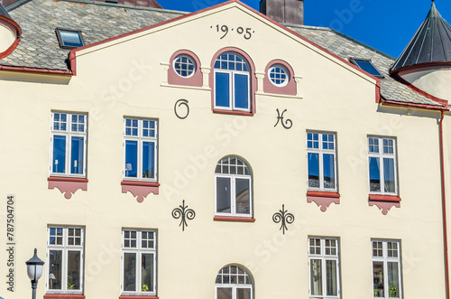 Naklejka premium View of buildings in Alesund, Norway, city known for Art Nouveau architecture