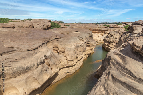 Fototapeta premium view of Canyon at Hat chom dao in Ubon Ratchathani Thailand with blue sky...