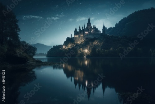 Fototapeta premium view of castle at night made with generative ai