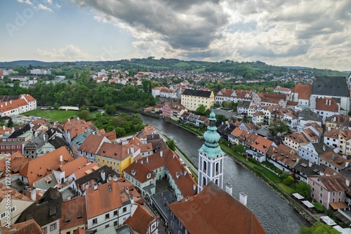Fototapeta premium View of Cesky Krumlov, Czech Republic, showcasing its historic architecture and the Vltava River