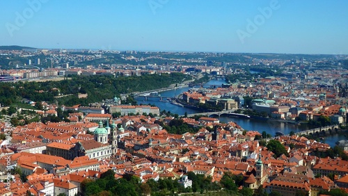 © Ummu, Fototapeta premium View of Charles bridge across Vltava river and the Prague castle complex on a sunny day in Prague, Czech Republic