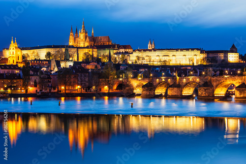 © Dmitry Rukhlenko, Obraz premium View of Charles Bridge Karluv most and Prague Castle