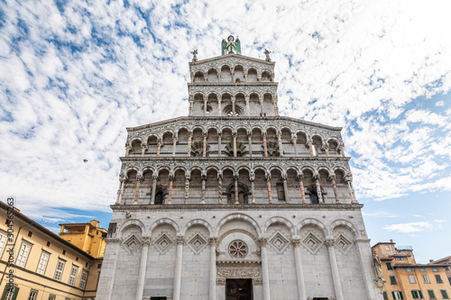 Naklejka premium View of Chiesa di San Michele in Foro. Roman Catholic basilica church in Lucca, Tuscany, central Italy, built over the ancient Roman forum