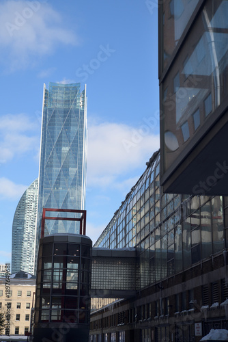 Obraz premium view of CIBC Square complex viewed from Station St and transit hub building (at right), Toronto